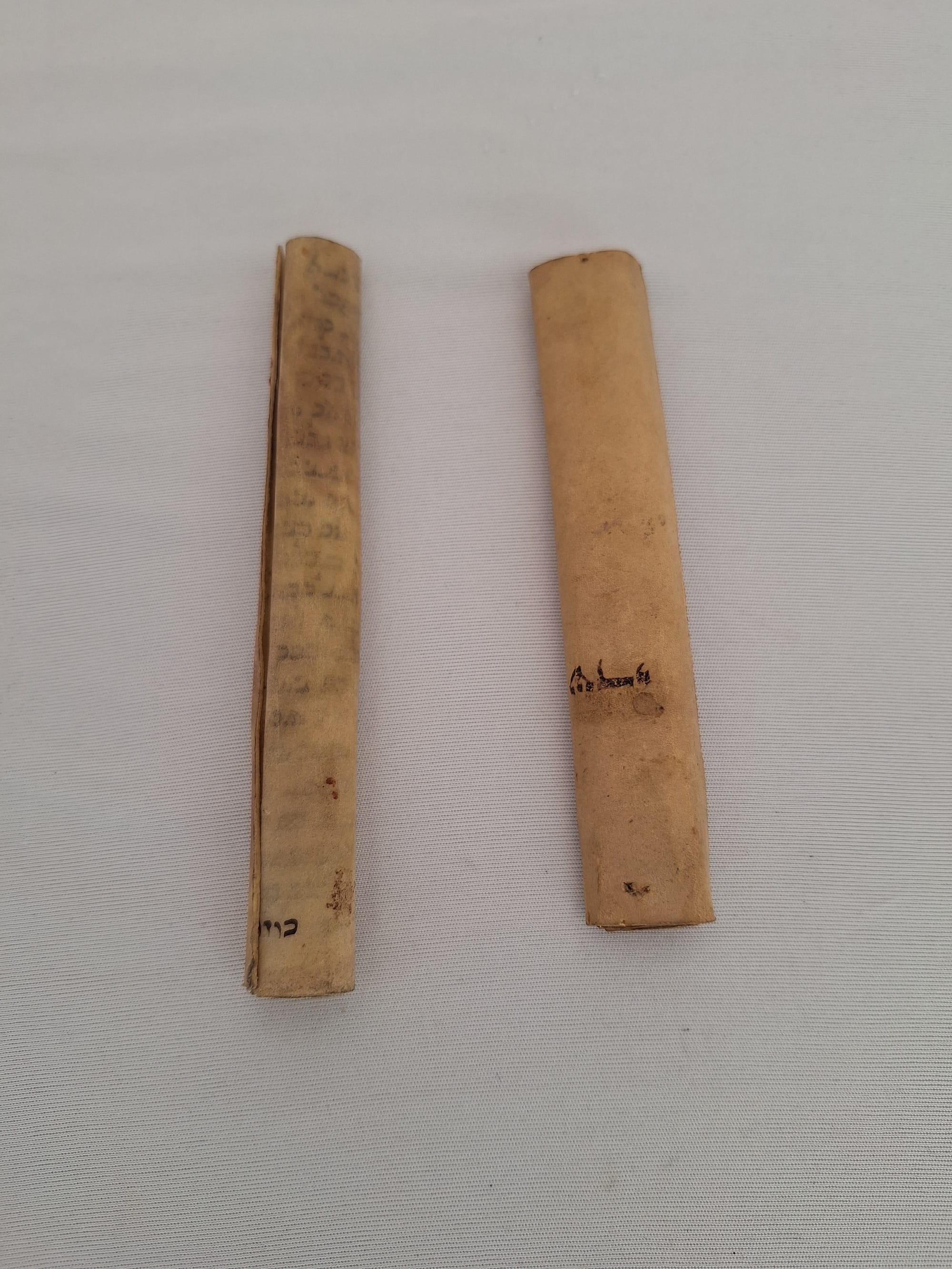 Mezuzah case with implement, silver, ca. 18th century, 8 cm
